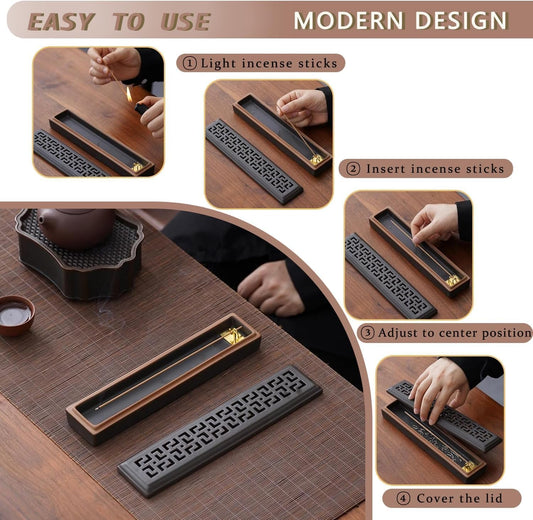 CEREMONY Japanese Style Ceramic Incense Stick Holder – Ash Catcher Burner with Lid – Meditation & Yoga Room Decor + 2 Boxes of Japanese Incense