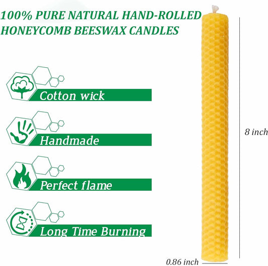 Natural Beeswax Taper Candles – 6-Pack, 8" Hand-Rolled, Dripless & Smokeless